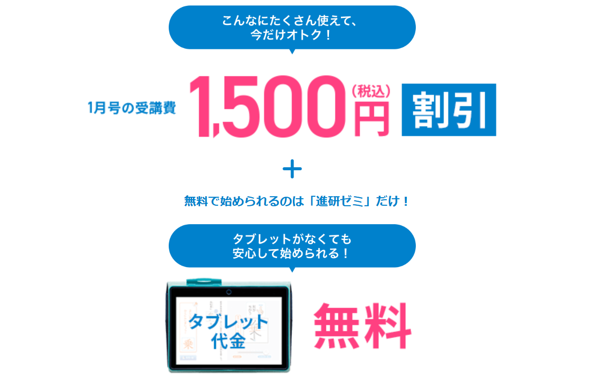 - タブレット料金0円&お支払いは3月から!新1年生応援キャンペーン