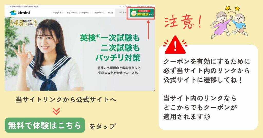 公式サイトしかチェックしてない人よりもお得にkimini英会話をスタートできる!